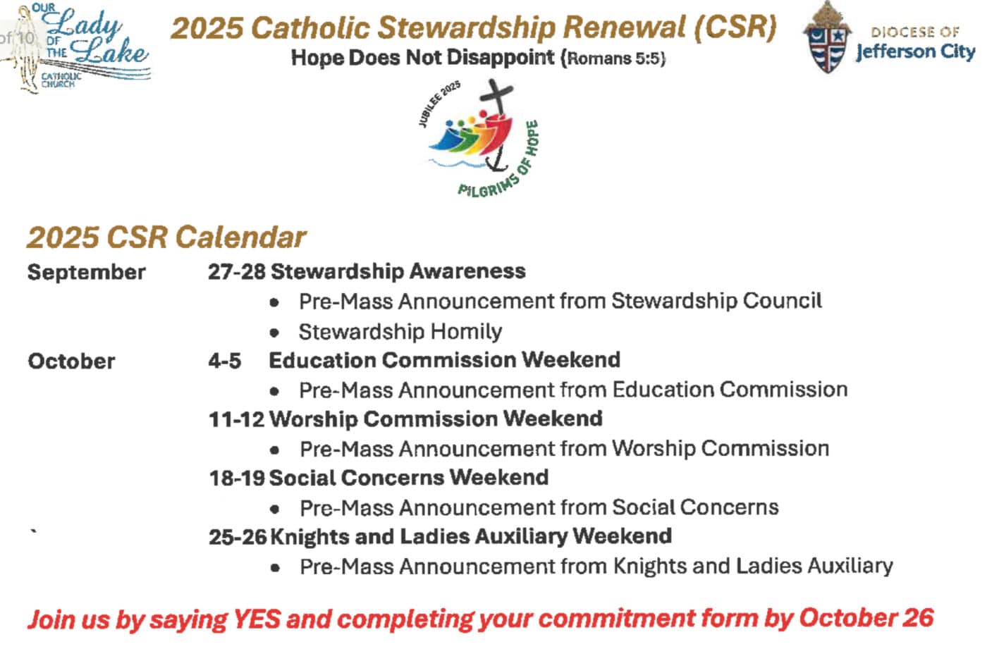 October 2, 2025 | | Education Commission, Knights, Ladies aux, Parish Pastoral Council, Social concerns, Stewardship Council, Uncategorized, administration