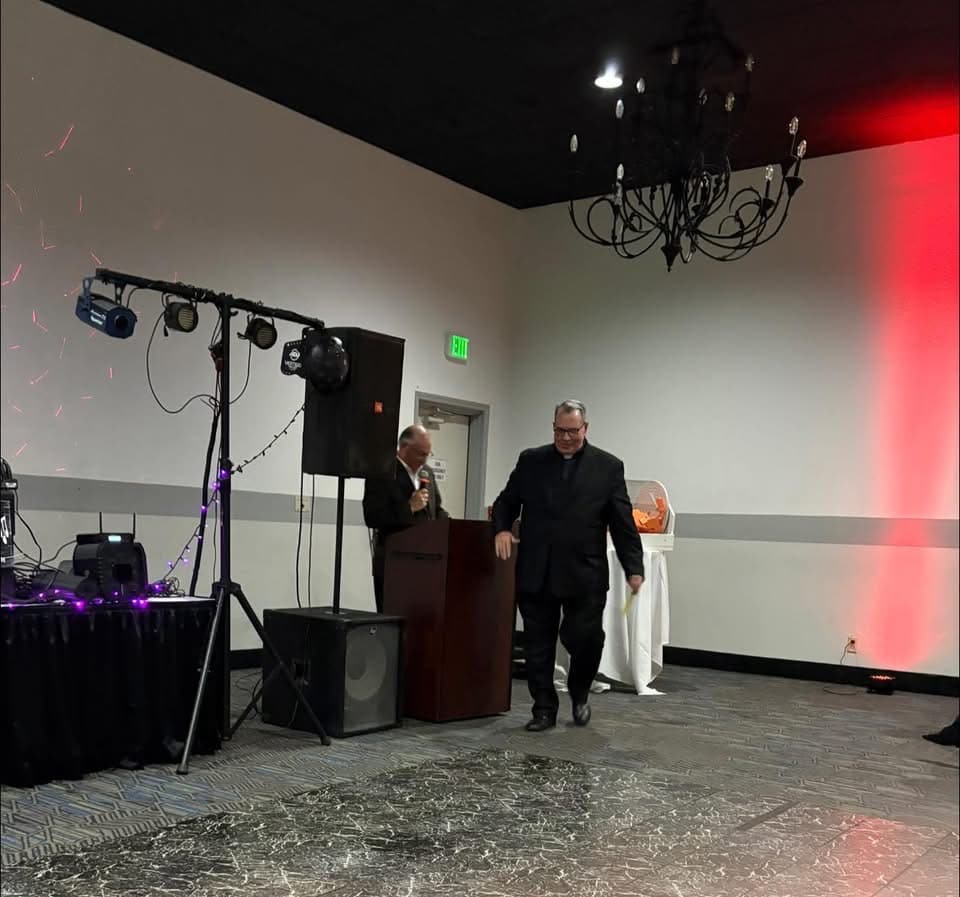 The OLOL Knights of Columbus and Ladies Auxiliary celebrated the holidays with their annual Christmas party last night. The evening was filled with great food and dancing. The evening was completed with a donation presentation to Monsignor Greg, Hope House and the Idiots Club.